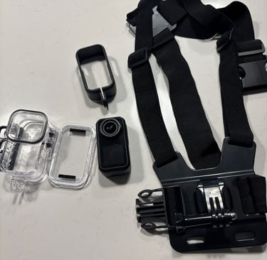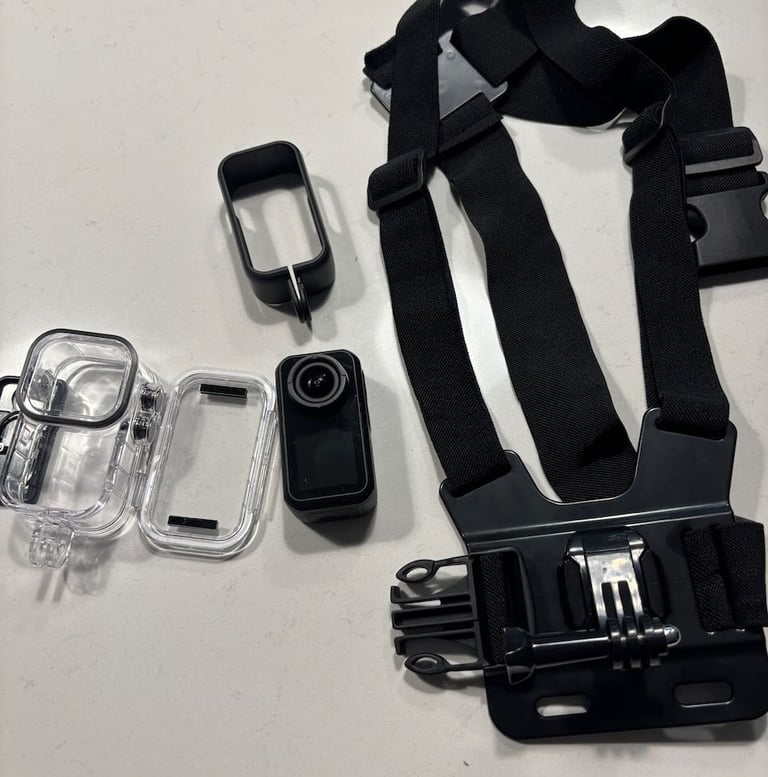 Bodycam accessories – chest strap, waterproof case, charging cable, extra mini-SD card