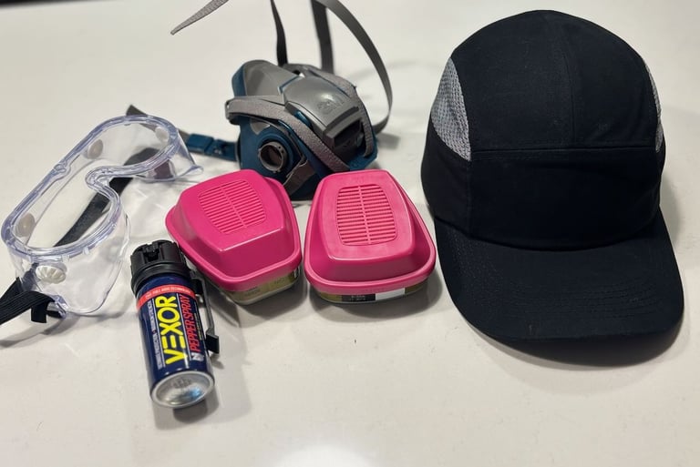 Afore mentioned unopened water bottle (use to flush eyes if sprayed with chemicals)