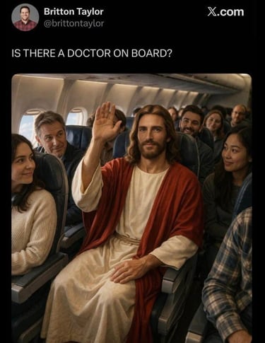 Trump: “only the fake news would come up with that…” (that the image shows him as Jesus.) Only the fake news??? Really? Because he looks like a DOCTOR and not Jesus in the image?