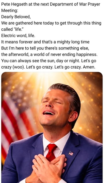 (Everyone understands that that Hegseth meme is quoting Price right? I don't need to explain that. Right??)