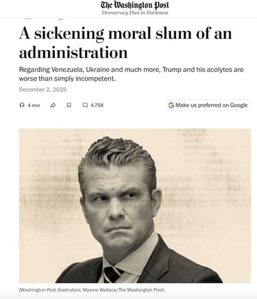 5. In Trump’s continuing misogyny toward female journalists - to ABC's Rachel Scott: "You are the most obnoxious reporter in the whole place. Let me just tell you -- you are an obnoxious-- a terrible reporter. And it's always the same thing with you. I told you." She’s brilliant and she had asked him about the military assaults on boats in the Caribbean. (Fox)