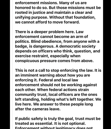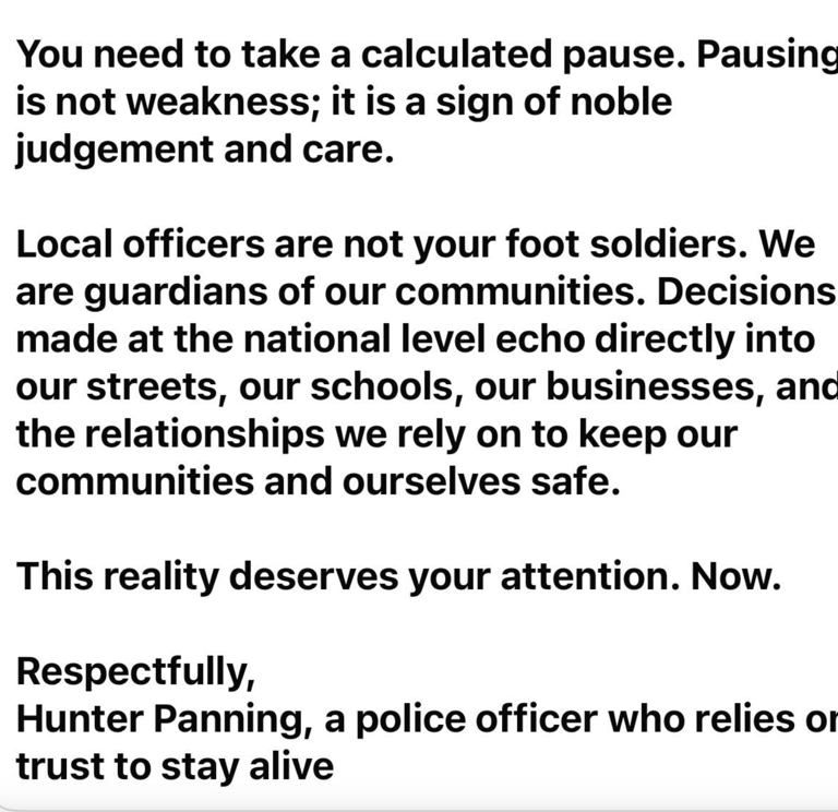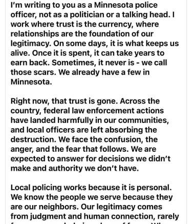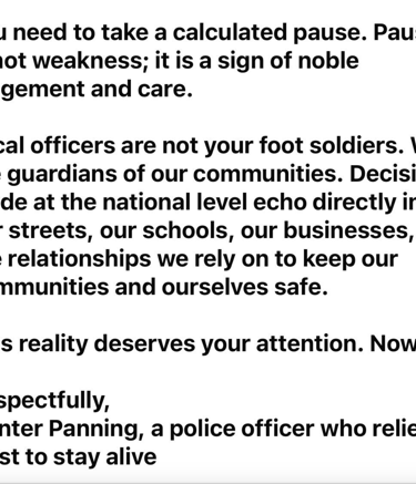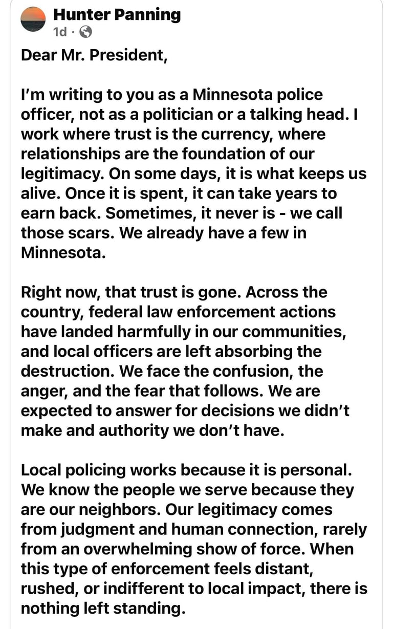 4. This is a letter from a Minnesota police officer who is pleading with President Trump to stop destroying the trust that is essential to policing.