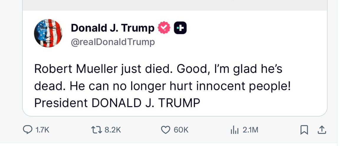 7. Example 100 billion of Trump just making crap up: President Trump claimed to reporters twice in one day that he had spoken to a former president who praised his war with Iran, saying: “I wish I did what you did.” No. Just no.