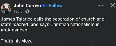 BTW: Interestingly, it was an American Baptist persecuted by Christian state governments in America who persuaded James Madison to include both freedom of religion AND freedom from state religion in the First Amendment r. A religious government is a recipe for religious persecution - even of Christians.