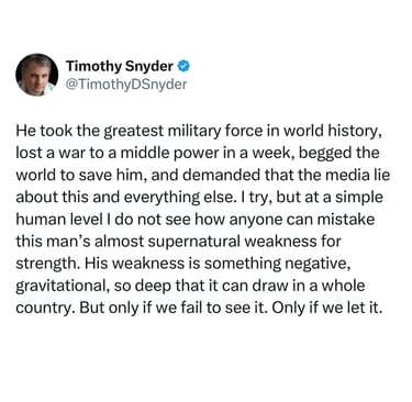 3. Remember that ridiculously embarrassing moment in 2025 when JD Vance, who, if you read this blog know, that we have established is a complete asshole, asked Zelensky in the Oval Office if he ever said “thank you” to the US? Well, if you’ll remember, one of the things Zelensky said was, "One day you will need allies. One day you will need help." Trump laughed it off. Last week, Trump was begging France, Canada, Spain and Switzerland for support in his war, and they told him to get bent.