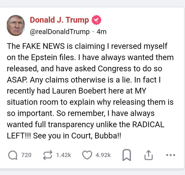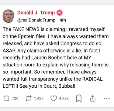 7. He spent his entire campaign saying he would release the Epstein files. Then once elected he fought tooth and nail to keep them from being released. To the point of calling his own supporters stupid for not letting it go. Then when he realized he was losing, badly, on the subject and even Boebert and MTG had turned against him – he “always” wanted them released. It never ends.