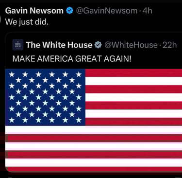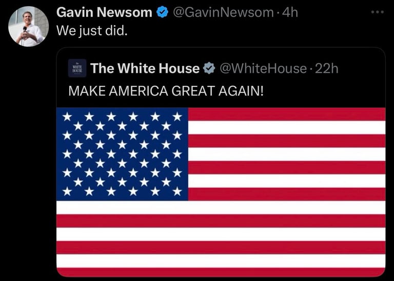 3. Gavin Newsom, in his ongoing trolling of Trump responded like this: