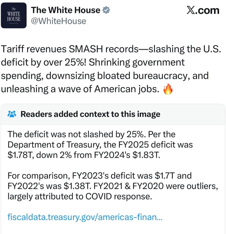 21. Here’s the White House account just blatantly lying and quickly fact-checked in “community notes”.