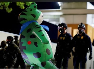 12. Back to the war zone that is Portland, military helicopters are patrolling over….the…the…. Farmer’s Market.